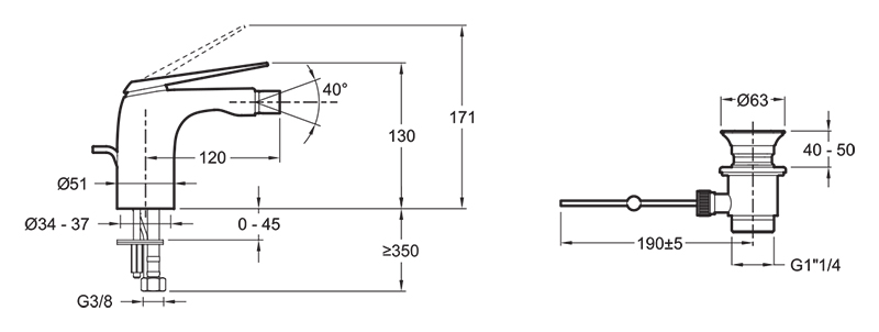 Смеситель для биде Jacob Delafon Avid E97014-CP, однорычажный, с донным клапаном pop-up.