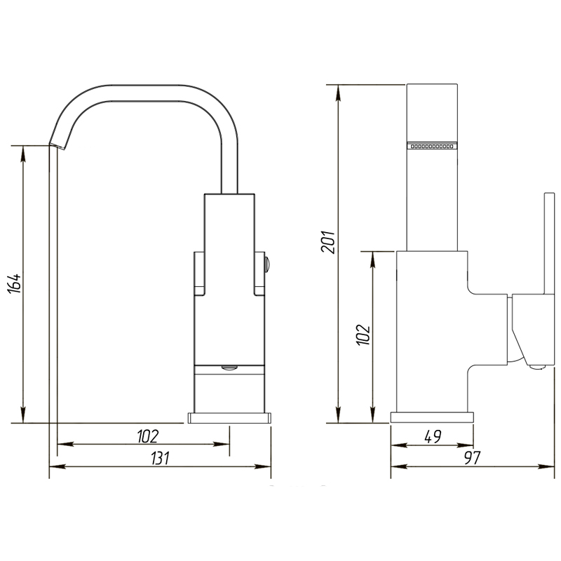 - Поворотный излив со скрытым аэратором.
