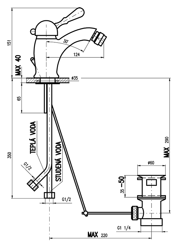 Смеситель для биде Rav Slezak Labe Mosaz L545.5SM монолитный, однорычажный, с металлическим донным клапаном clik-clak. Качественный керамический картридж 35 мм Kerox, производство Венгрия, гарантирует долговечность и мягкий поток воды. Гибкая подводка G1/2, длиной 350 мм. В комплекте смеситель, гибкая подводка и крепления.