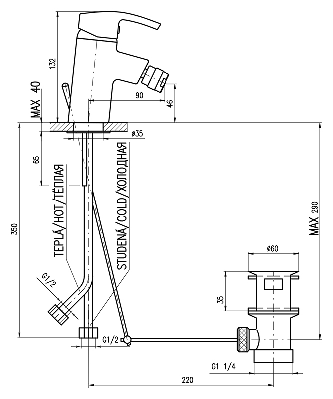 Rav Slezak Rio R145.5 смеситель для биде с открыванием стока. Гибкая подводка.