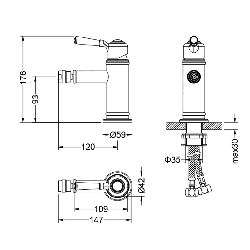Однорычажный смеситель для биде Timo Arisa 5312/02F antique.
