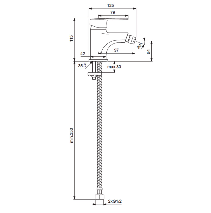 - Съемные шланги для подвода воды длиной 40 см, G 1/2.