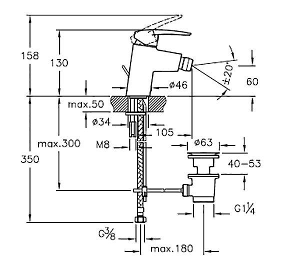 Смеситель для биде Vitra Dynamic S A40952EXP с донным клапаном.