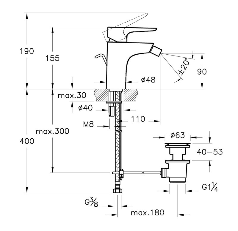 - Гибкая подводка G 3/8.