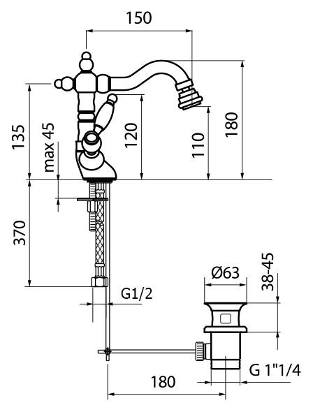 Смеситель для биде Webert Alexandra AL710402017 двухвентильный, с ручками украшенными кристаллами Swarovski, устанавливаемый в одно отверстие, с донным клапаном.