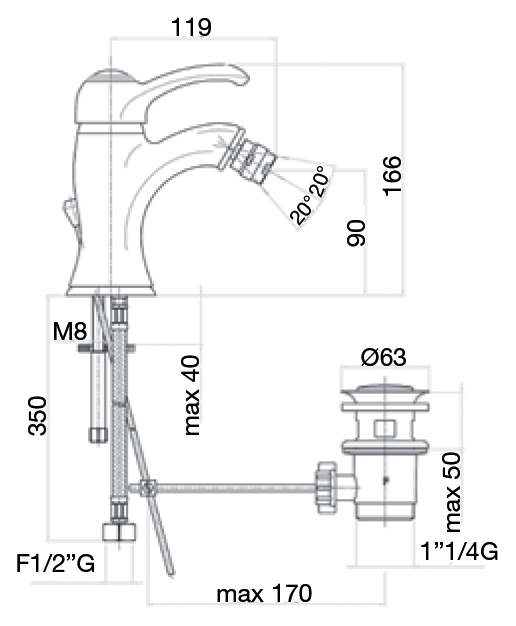 - Донный клапан: G 1 1/4.