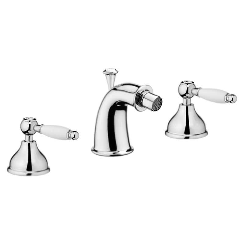 Смеситель для биде Webert Dorian DO710202015 двухвентильный, с ручками стилизованными под керамику, устанавливаемый в три отверстия, с донным клапаном.