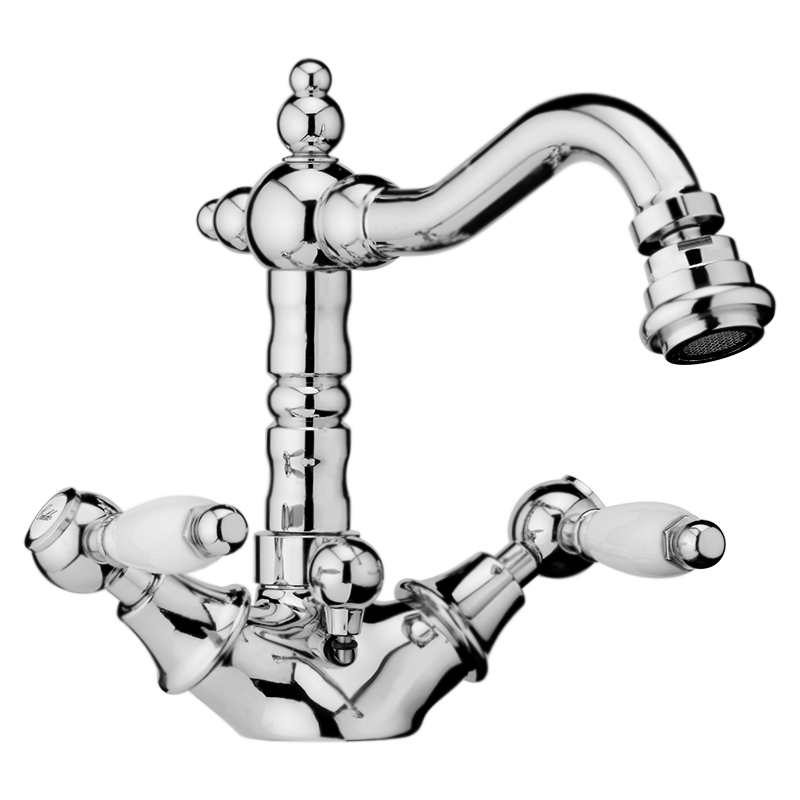 Смеситель для биде Webert Dorian DO710402015 двухвентильный, с ручками стилизованными под керамику, устанавливаемый в одно отверстие, с донным клапаном.