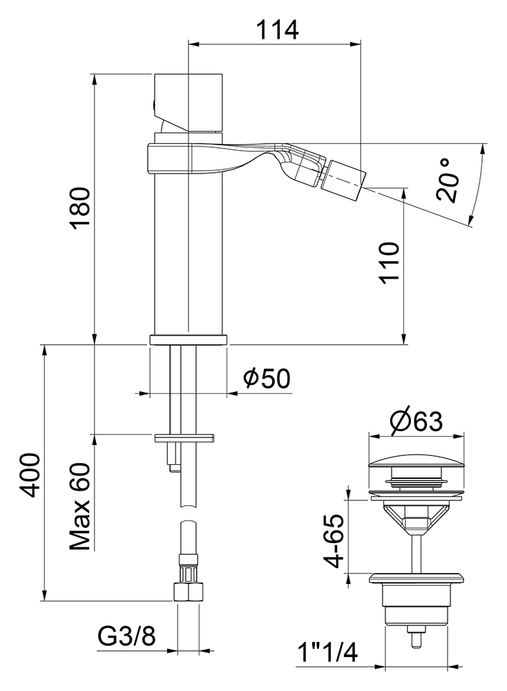 - Донный клапан: click-clack, G 1 1/4.