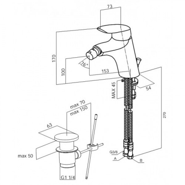 Смеситель для биде AM.PM Bliss L F5383132 с донным клапаном.