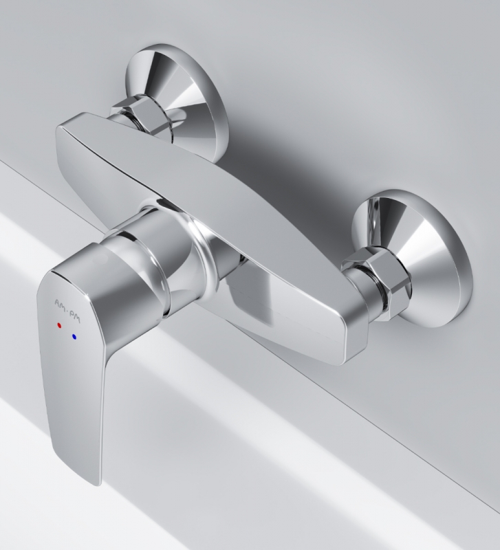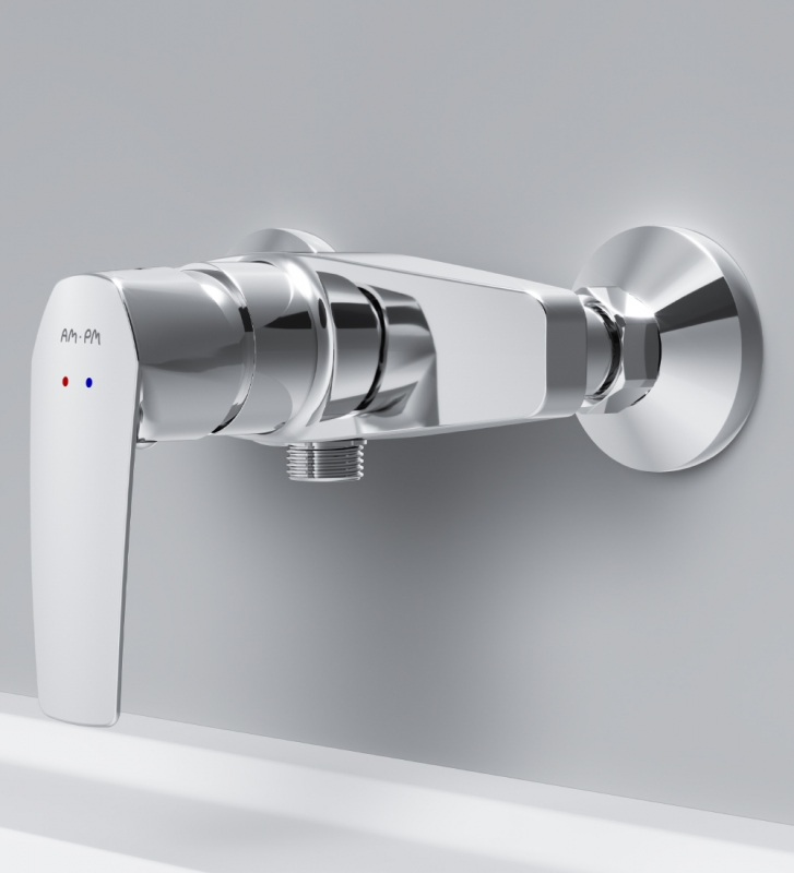 Настенный смеситель для душа AM.PM Gem F9020000 однорычажный. Уникальная шестиугольная форма ручки задает тон всей дизайнерской коллекции Gem, вызывая ассоциации с гранями бриллианта.