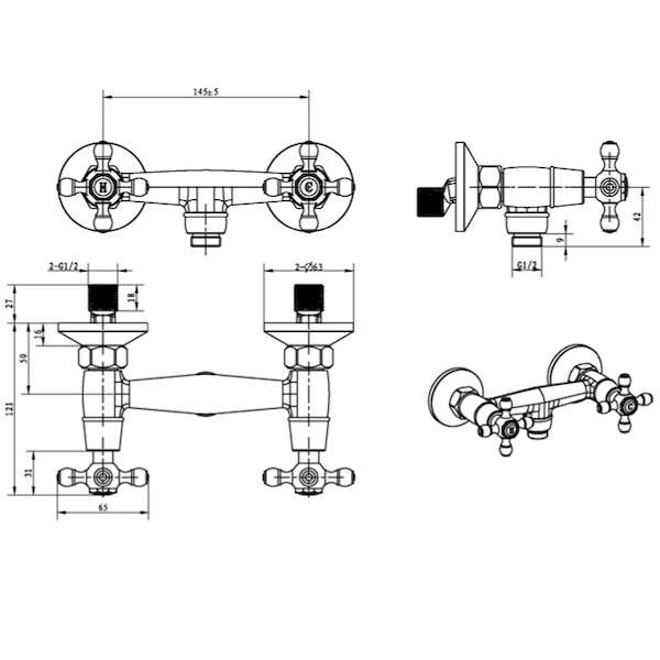 - Смеситель, гибкая подводка G1/2, крепежный комплект