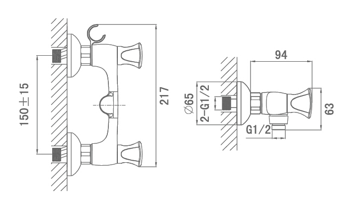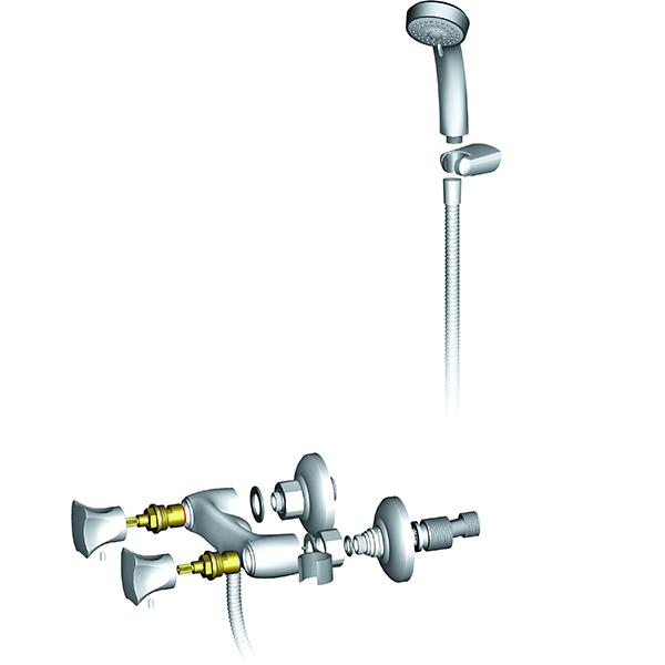 Смеситель для душа D&K Grimm Hessen DA1383101 с душевым гарнитуром, двухзахватный, на два отверстия для монтажа.