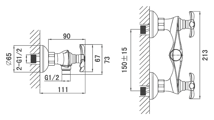 - Монтаж смесителя: настенный.