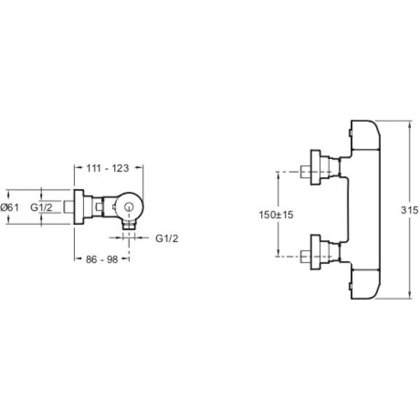 Смеситель для душа Jacob Delafon Villette E23720-CP с термостатом.