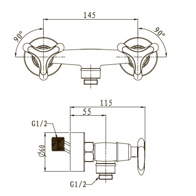 Смеситель для душа Kaiser Trio 57077-1 Бронза