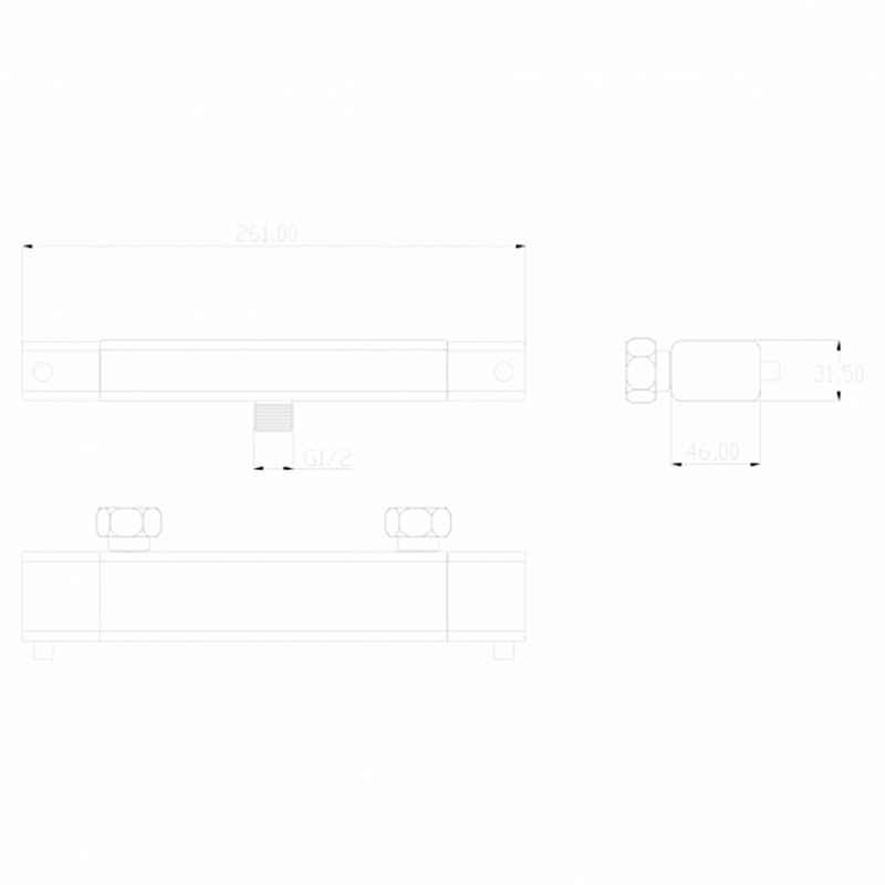 В комплекте поставки: термостатический смеситель, эксцентрики и декоративные накладки, набор креплений, инструкция.