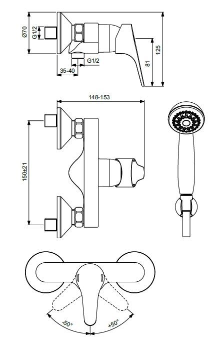 - 1-режимная лейка с функцией легкой очистки и настенным держателем.