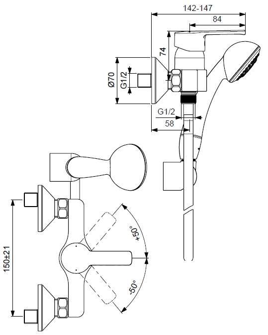 - 1-режимная лейка с функцией легкой очистки и настенным держателем.