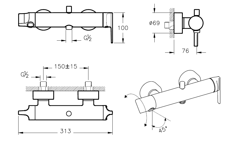 - Точная регулировка температуры и напора воды.