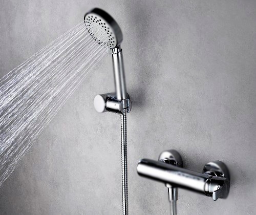 - Настенный смеситель для душа WasserKRAFT Berkel 4802 однорычажный, с душевым гарнитуром, монтируемый в два отверстия.