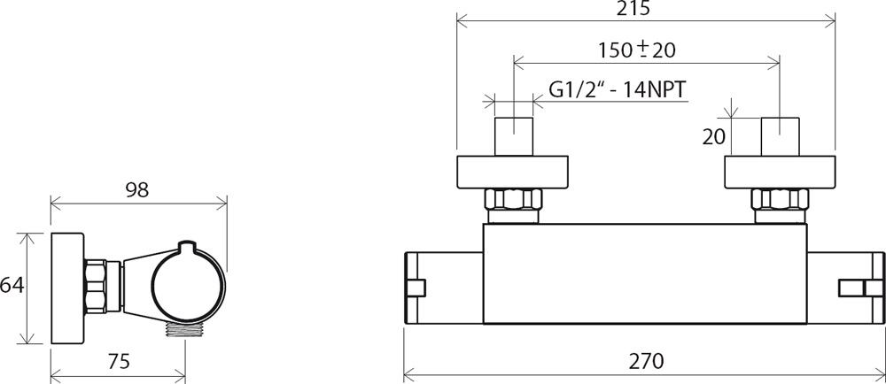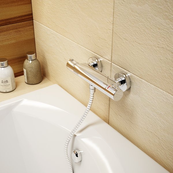 Настенный термостатический смеситель Ravak TE 072.00/150. Керамический картридж для регулирования напора воды и термостатический картридж для регулирования температуры воды. Гарантия 5 лет. Постоянная температура воды в душе, максимально до 38°C. Кнопка блокировки заданой температуры. Межосевой размер термостатического смесителя - 150 мм.