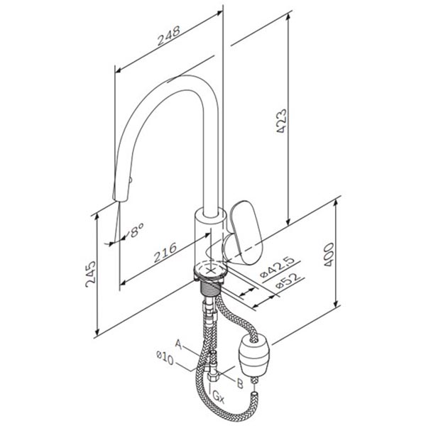 Тип подводки: гибкая G 3/8.