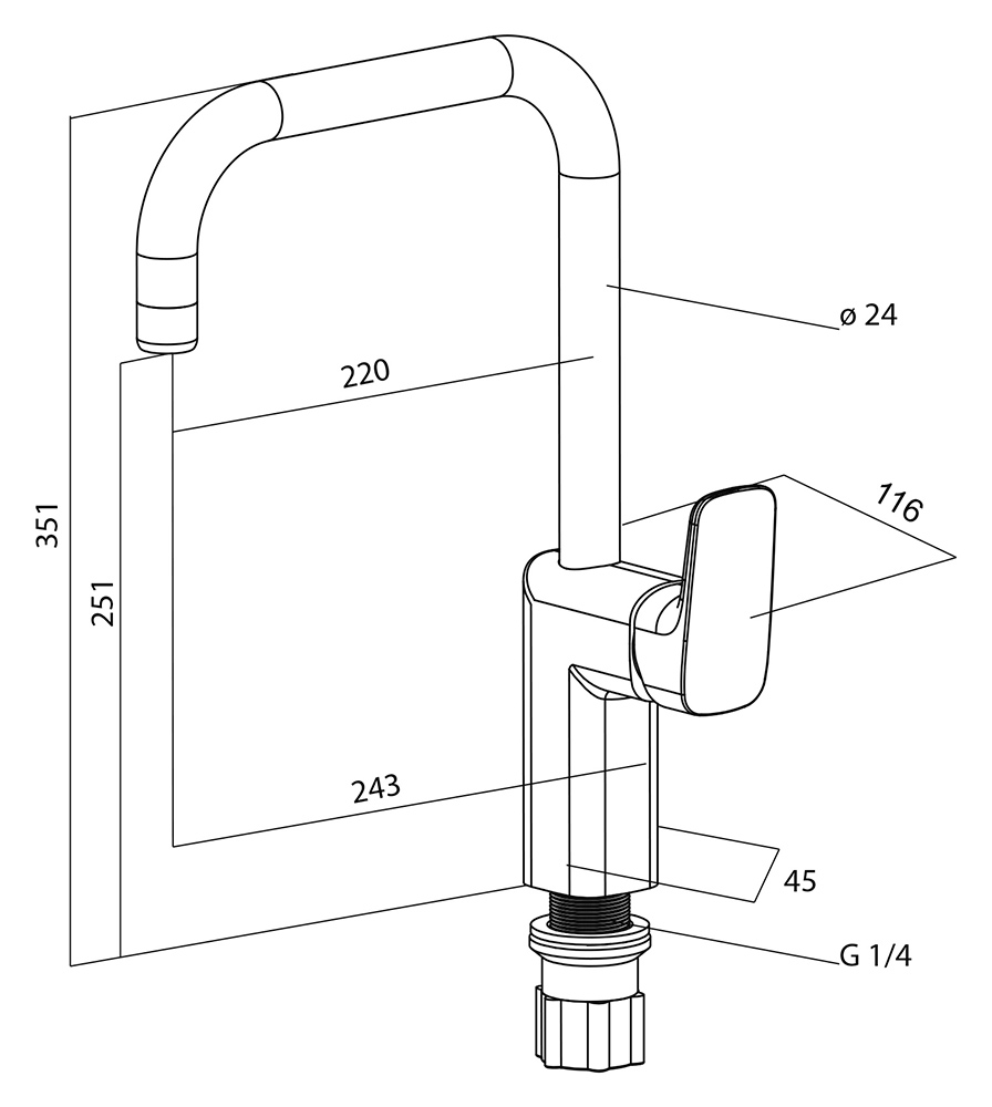 Высокий смеситель для кухни AM.PM Spirit F7007064 однорычажный, с аэратором, монтируемый в одно отверстие.