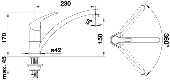 - Излив с возможностью поворота на 360 градусов.