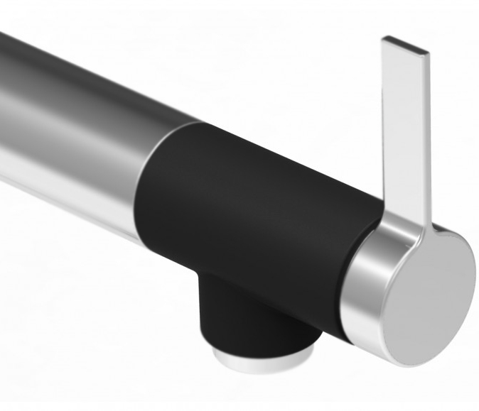 - Цвет корпуса: глянцевый хром. Отделка: черный прорезиненный материал.