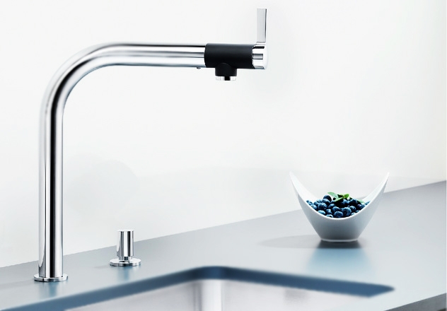 Высокий смеситель для кухни Blanco Vonda 518434 однорычажный, с поворотным изливом, с аэратором, монтируемый в одно отверстие. Эргономичный рычаг управления на носике излива. Отделка из черного прорезиненного материала. Высокий, вращающийся излив для легкого мытья и наполнения кастрюль. Соответствует европейским стандартам.