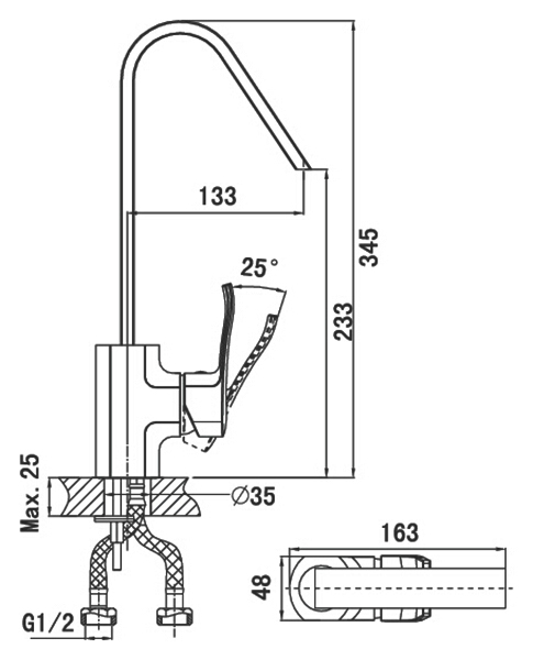 - Подключение: гибкая подводка G1/2.