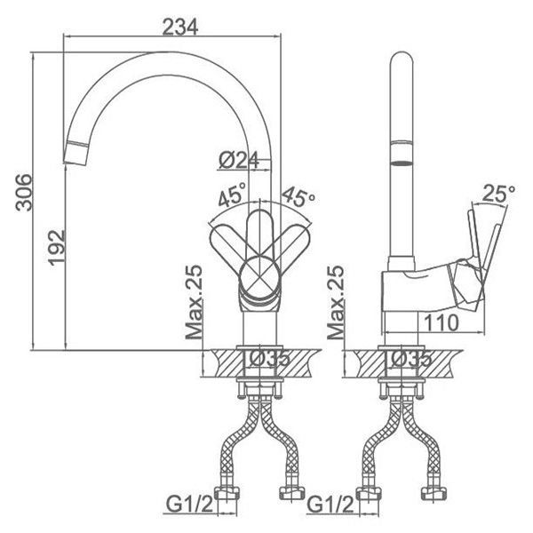 Смеситель для кухни D&K Marx Rhein DA1392401 с поворотным изливом, однорычажный, на одно отверстие для монтажа.