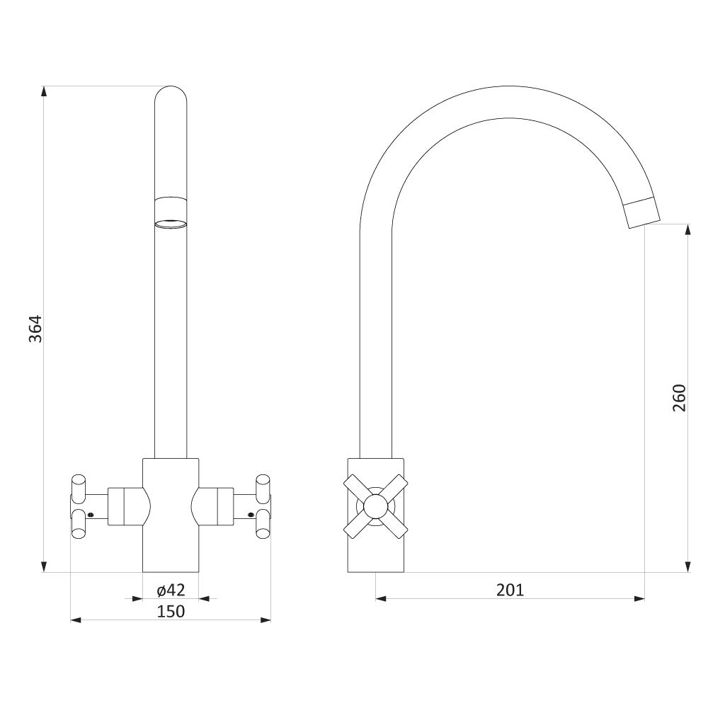 Высокий смеситель для кухни Damixa Neo Classic 280000000. Элегантное и практичное решение: утонченный излив, оригинальные ручки, тщательно сбалансированные пропорции. Высококачественная латунь защищена от коррозии и устойчива к перепадам давления и температуры.