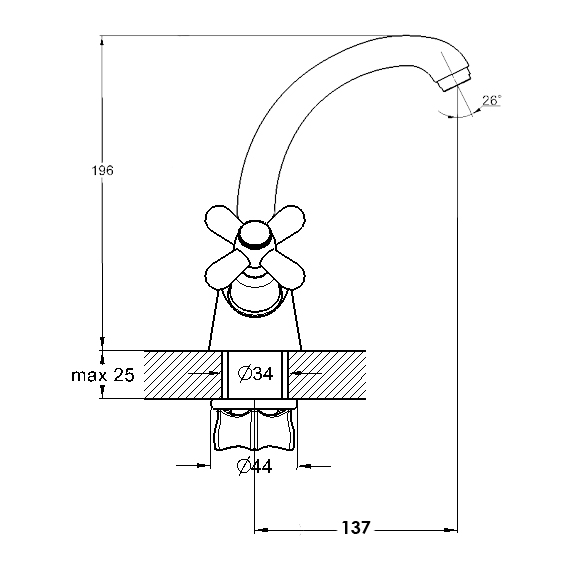 - Изготовлен из качественной латуни по технологии литья под давлением. Это обеспечивает равномерную толщину стенок смесителя, сводит к минимуму риск образования внутренней коррозии.
