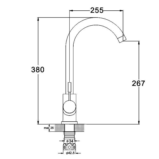 Однорычажный смеситель для кухонной мойки G-Lauf ZAP4-A090. Цвет: нержавеющая сталь.