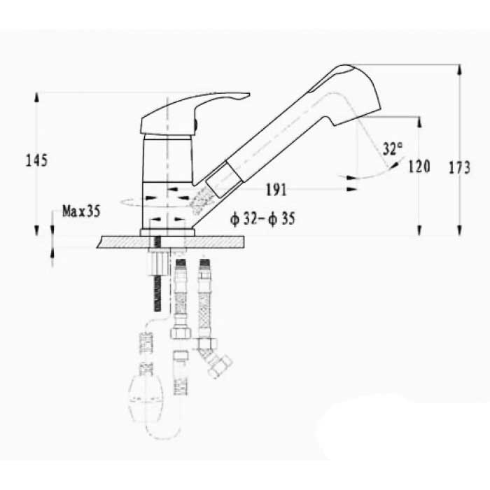 - Поворотный выдвижной излив с аэратором и лейкой.