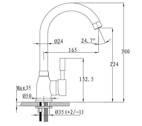 - Поворотный излив с аэратором.