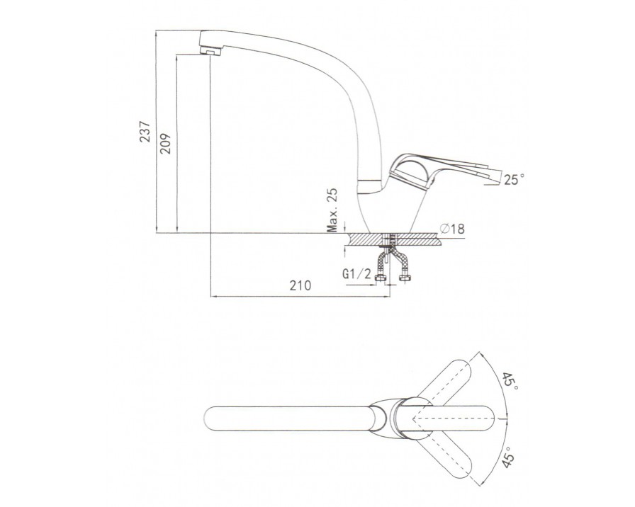 Однорычажный смеситель для кухни Granula GR-2024. Цвет: арктик.
