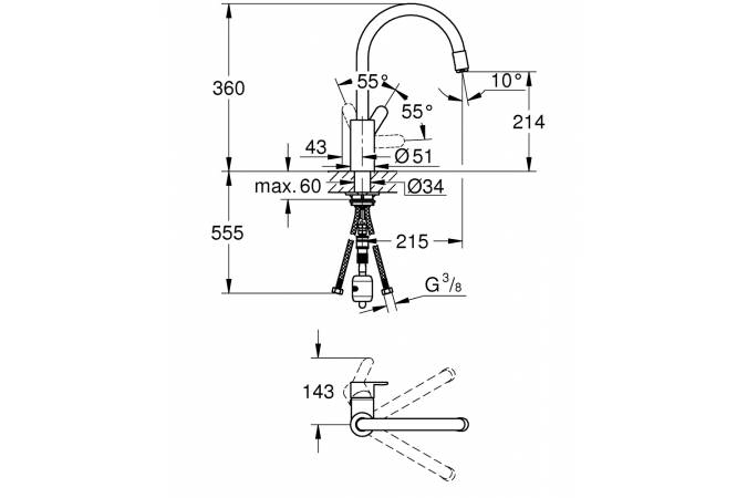 Однорычажный смеситель для кухни Grohe Eurostyle Cosmopolitan 31126004 с выдвижным изливом.