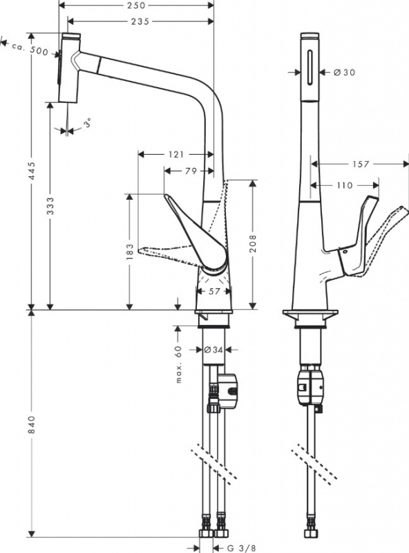 - Стандарт подвода воды: 3/8.