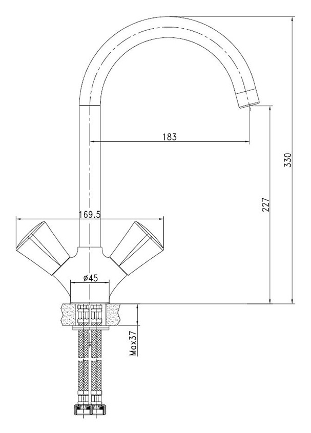 - Излив: поворотный, L 18,3 см. Высота смесителя: 33 см.