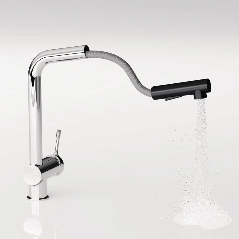 - С высоким трубчатым поворотным выдвижным изливом, угол поворота 360 градусов.