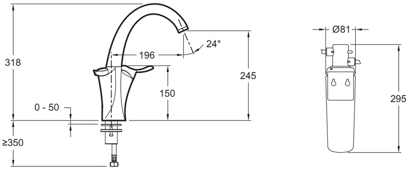 - Экономичный расход воды: 13 л/мин (фильтрованная вода - 4 л/мин).