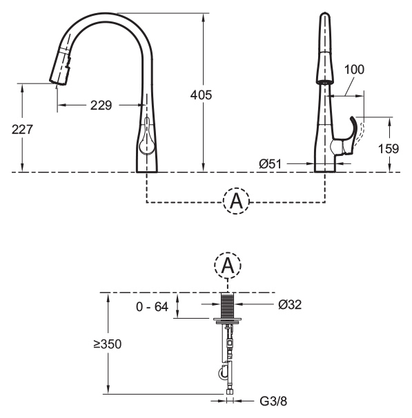 С выдвижным изливом |