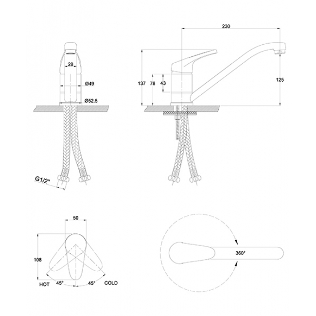 Смеситель для кухни County 66233-1 выполнен в минималистическом дизайне, великолепно сочетающийся в современном интерьере кухни. Продуманная конструкция, встроенный керамический картридж и хромированный корпус дает гарантию, что сантехника не утратит ни внешней привлекательности, ни своих функциональных качеств даже спустя длительное время.