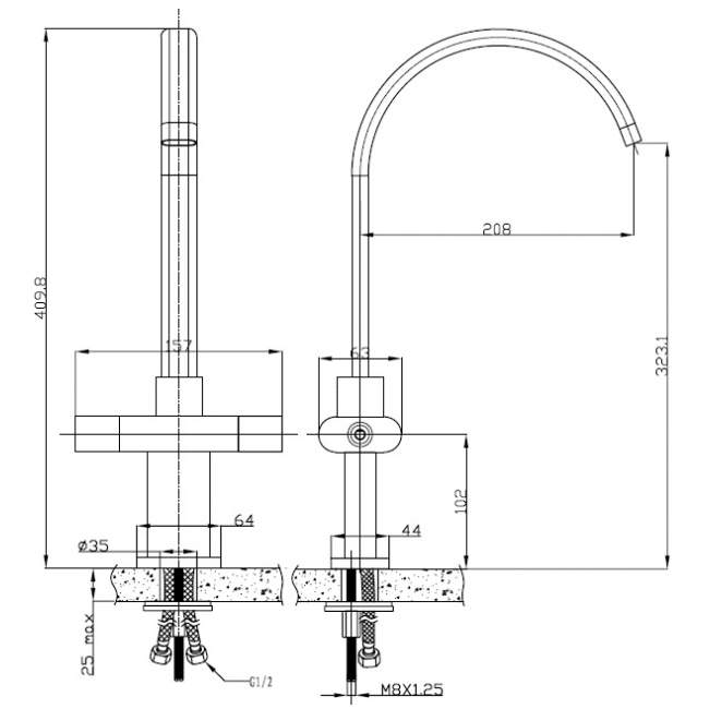 Смеситель для кухни Kaiser Elite 2070055/54033 Хром