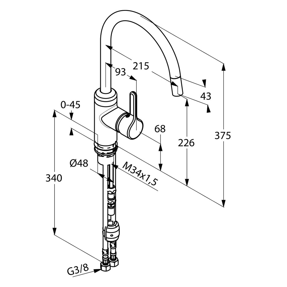 - Гибкая подводка G 3/8.