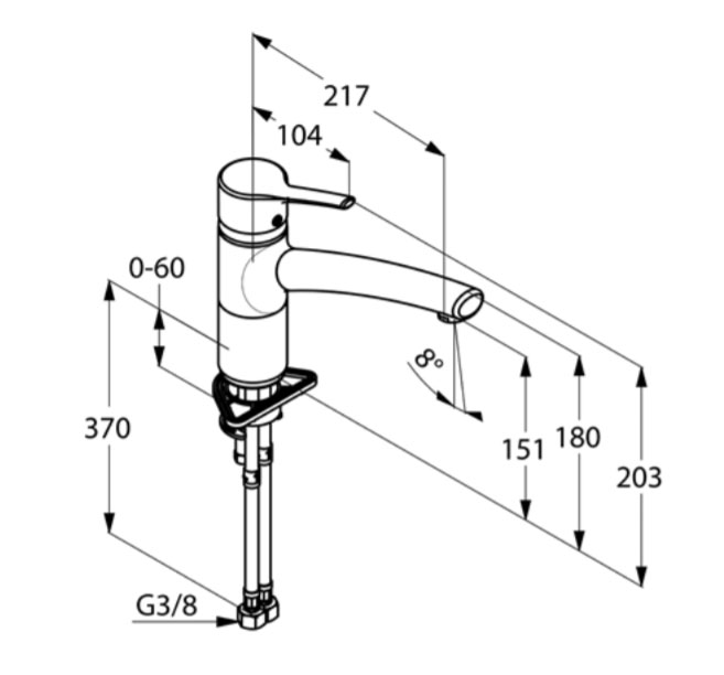 - Гибкая подводка G 3/8.