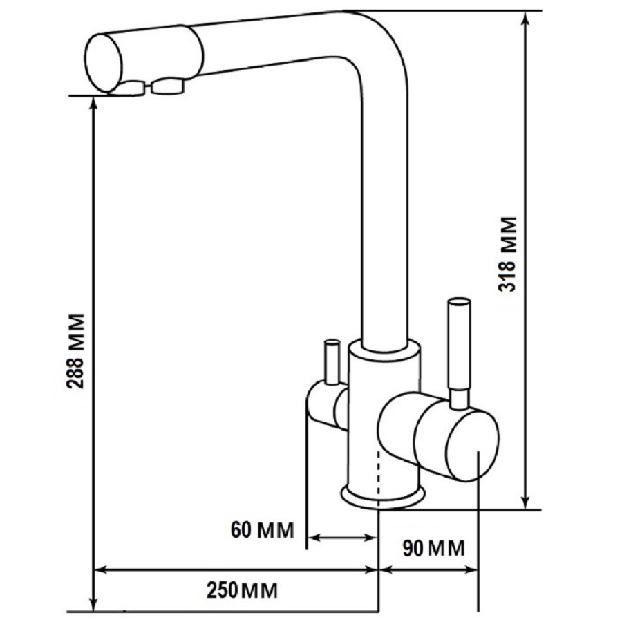 - Предусмотрена отдельная трубка для подачи питьевой воды, осуществляется с помощью малого рычага.